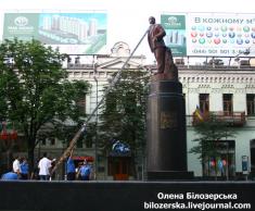 Сьогодні, 30 червня, у день народження головнокомандувача УПА Романа Шухевича, о 4:20 ранку, член Конгресу українських націоналістів Микола Коханівський з товаришами серйозно пошкодили пам’ятник Леніну біля центрального Бесарабського ринку у Києві.