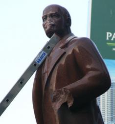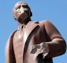 Треба ж було прив"язати верх драбини до пам"ятника, ось тоді вже махай кувалдою з-за плеча, перед чим вже ніщо не встоїть. А потім би гранітну голівку в заплечник і до Дніпра. Думати треба. Тепер буде час думати в СІЗО.