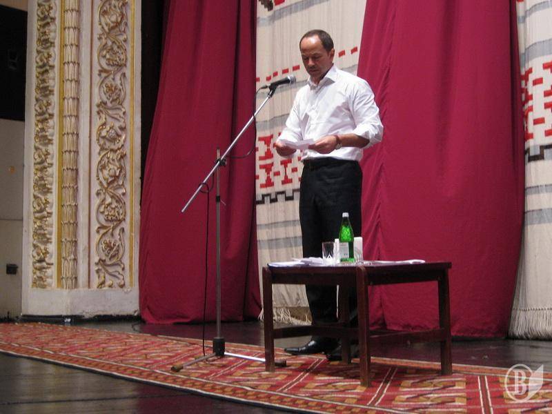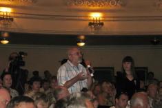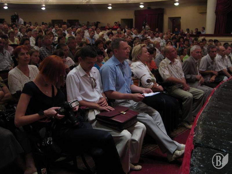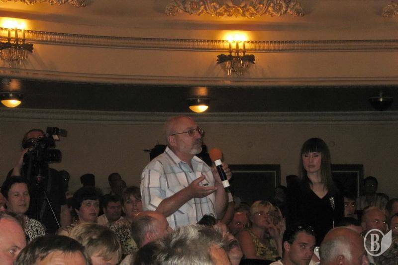 Об 11 годині у приміщенні театру ім. Т.Г. Шевченка жителі міста могли поспілкуватися та поставити свої запитання кандидату. Зала була повна. Більшість присутніх - віком від 30 до 60 років.