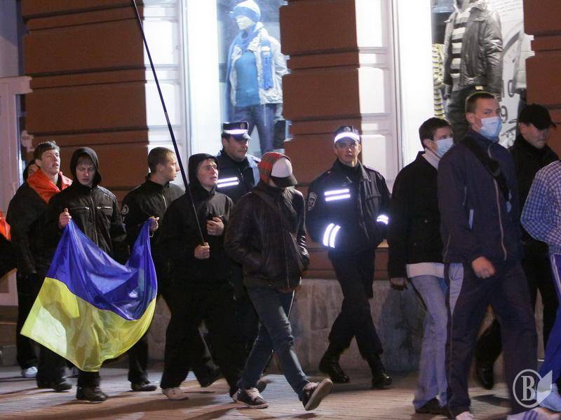 Йшли під жовтими і чорно-червоними прапорами, по двоє в ряд, вигукуючи відповідні гасла і роздаючи словесних стусанів усім "неграм", "хачікам", "жидам" і "клятим москалям".