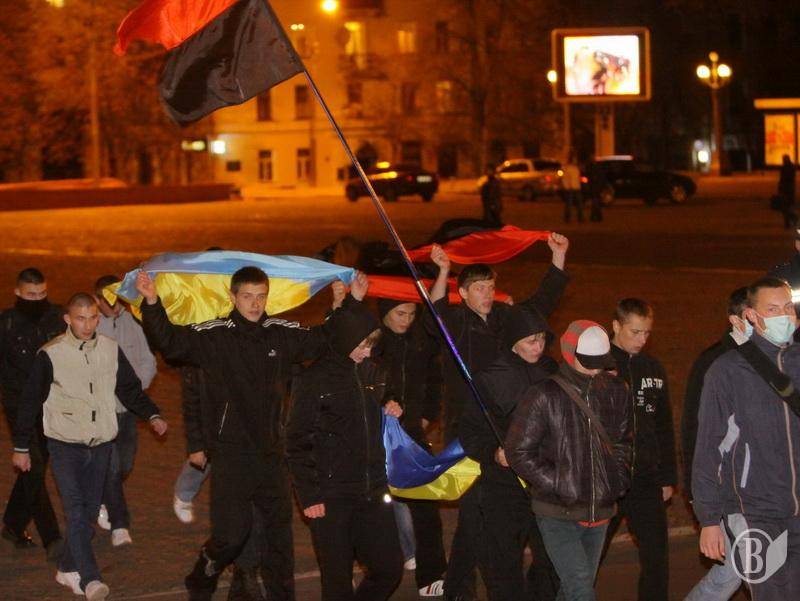 Увечері 14 жовтня по Чернігову від "Мегацентру" до Катерининської церкви пройшли організованим маршим місцеві українські націоналісти.