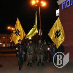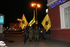 Вечером 14 октября по Чернигову от"Мегацентра"до Катерининской церкви прошли организованным маршем местные украинские националисты.