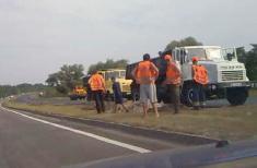 Щоб потішити президента, "Укравтодор" працює вдень і вночі, у будні і у вихідні. Новий асфальт ударними темпами кладуть на в'їзді у Київ з боку Вишгорода.