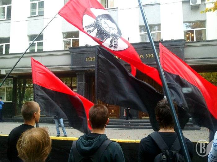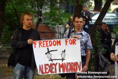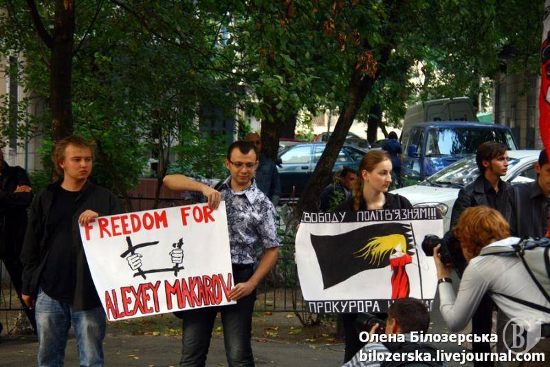 Они держали большой баннер «Макарову – свободу, экстрадиции нет!» и лозунги «Свободу политзаключенным, прокурора на мыло!» и другие. На лестнице ГПУ разбрасывали листовки на защиту Макарова и даже забросили стосик листовок внутрь.