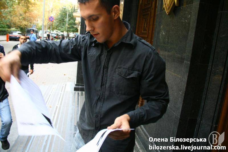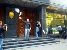 Тогда одна девушка сказала: «Если Генпрокуратура хочет нашей крови – она ее сейчас получит!» – и бросила в двери ГПУ пакет с густой кровянистой жидкостью, обляпав двери и пол перед ними.
