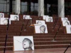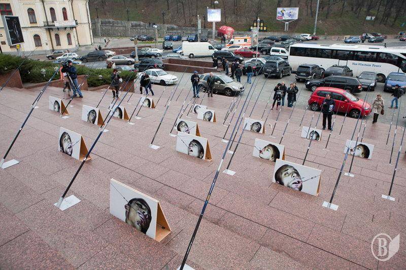 Щоб привернути увагу суспільства, борці з курінням на сходах Українського дому побудують інсталяцію «Звільнимо Україну від гачків тютюнової індустрії».