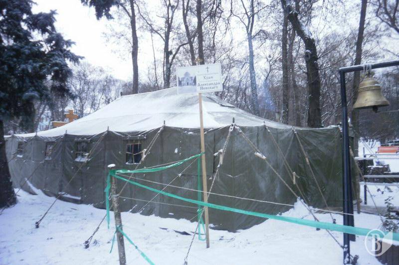 Тут поряд з українським парламентом систематично відбуваються зібрання для проведення служби у так званому похідному «Храмє Святага благовєрнаго князя Алєксандра Нєвського», що належить до УПЦ Московського патріархату, надається притулок і гаряче харчування безпритульним.