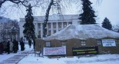 «Молитвенное круглосуточное стояние против…» під стінами Верховної Ради України продовжується, бо «йолку» під Верховною Радою влада не ставить.