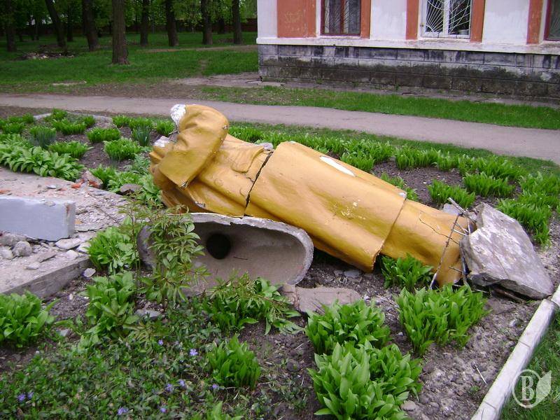 - У результаті негоди та сильного вітру, сьогодні вночі впав та розбився на частини черговий пам"ятник комуністичної доби кату Української Нації - Ульянову ("Лєніну"), який довго бовванів у районі "Шерстянка", - повідомила "Високому Валу" прес-служба Чернігівської обласної організації Конгресу Українських Націоналістів.