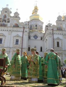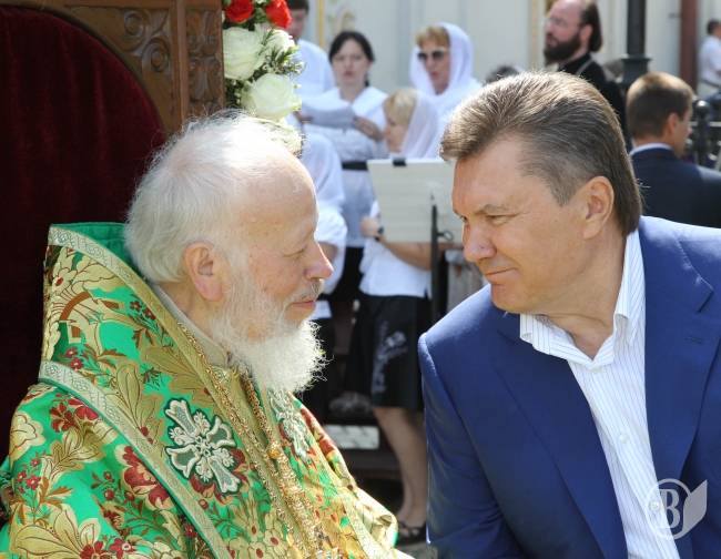 Після Божественної літургії Глава держави та Предстоятель Української православної церкви привітали один одного зі світлим святом Трійці. Віктор Янукович отримав благословення від Блаженнішого Володимира.