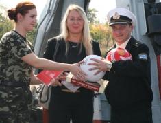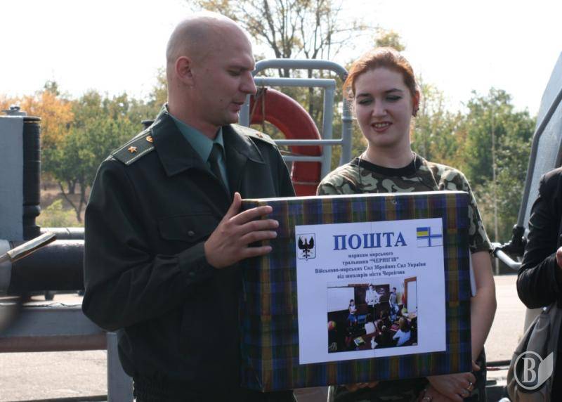 Учнівські листи, шахово-шашкові набори, книги, волейбольні та футбольні м’ячі на корабель привезли чернігівські журналісти: творчий колектив військової телепередачі обласного телебачення «Армійська кухня» Наталя та Андрій Кузьменки і кореспондент газети «Чернігівські відомості» Інга Вітковська.