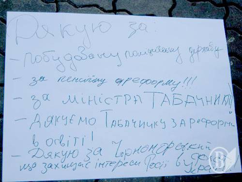 Навколо будь-хто з охочих міг написати, за що він «дякує» Януковичу: за високі ціни, за низький рівень життя, за горе-міністра Табачніка, за теперішню ситуацію в країні.