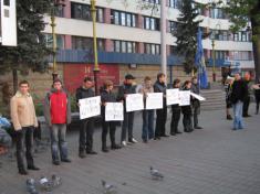 «Ми не хочемо нічого поганого сказати про жителів Донбасу, адже вони прості люди, такі, як і ми, – працюють на шахтах, заробляючи собі на життя. Ми намагаємося сказати: досить обурюватися «на кухні», варто виходити та відстоювати свої соціальні та національні інтереси, які тотально обмежує режим Януковича», – зауважив координатор «Студентської Свободи» Василь Попович.
