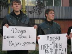 «Якщо зло не можна подолати, то його треба висміювати. Студенти мають розуміти, що не слід боятися «данєцкого» режиму. Ми маємо показати свою тверду позицію спротиву нинішній владі не тільки акціями, що несуть у собі агресію, але й такими саркастично-іронічними діями», – підкреслила активістка «Студентської Свободи» Віталія Сарабін.