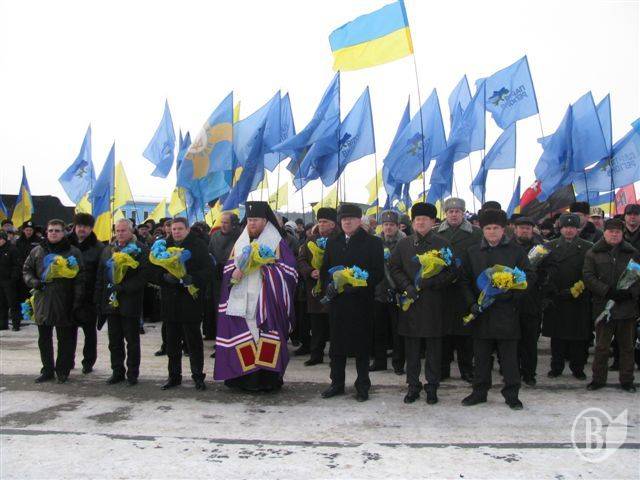 На чолі колони учасників заходу – голова обласної державної адміністрації Володимир Хоменко, перший заступник голови обласної ради Іван Коробка. Спільно з корпусом керівників області, гостями, молоддю вони поклали квіти від обласної державної адміністрації, обласної ради, Міністерства культури України, політичних партій, громадських організацій, козацьких формувань, делегацій із областей України, районів області до Хреста пам’яті Героїв Крут.