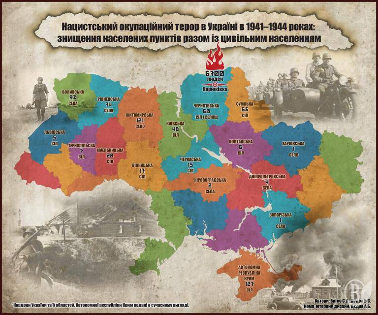 Про великі масштаби знищення населених пунктів разом із цивільним населенням Чернігівської області внаслідок каральних акцій окупантів свідчить той факт, що з 63 сіл і селищ 33 кваліфікуються в джерелах як повністю спалені. До переліку повністю знищених населених пунктів також, на думку упорядників, правомірно віднести і 8 сіл, про які в документах вказано «спалене» або «майже повністю спалене». Отже, карателі практично повністю знищили 41 населений пункт Чернігівщини. Всі інші постраждали частково.