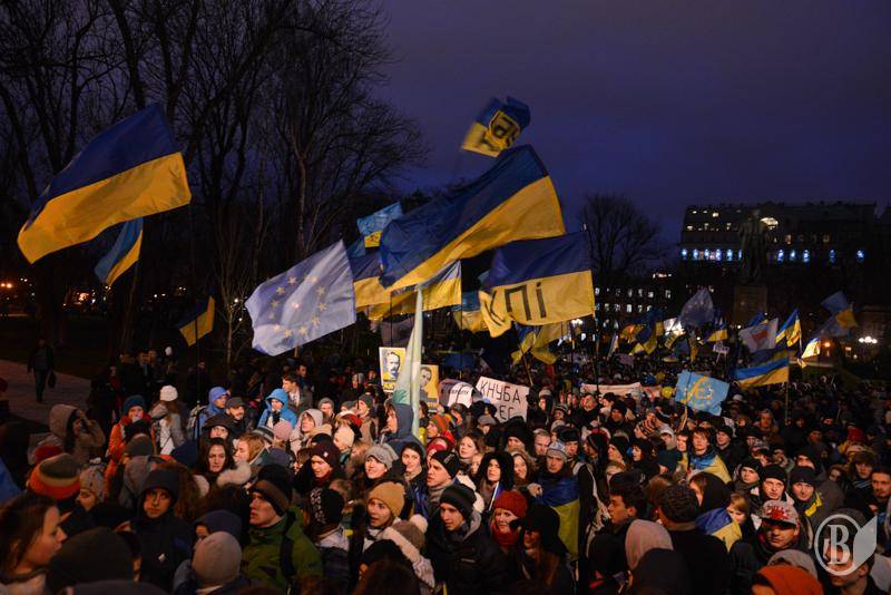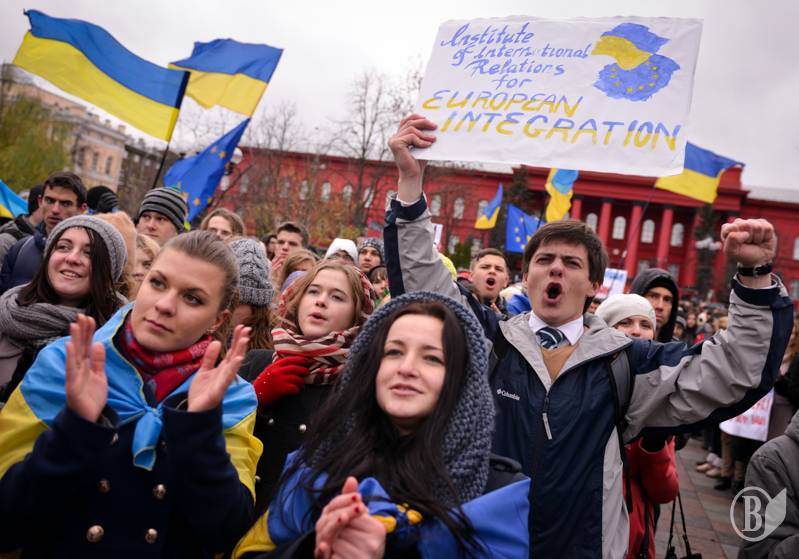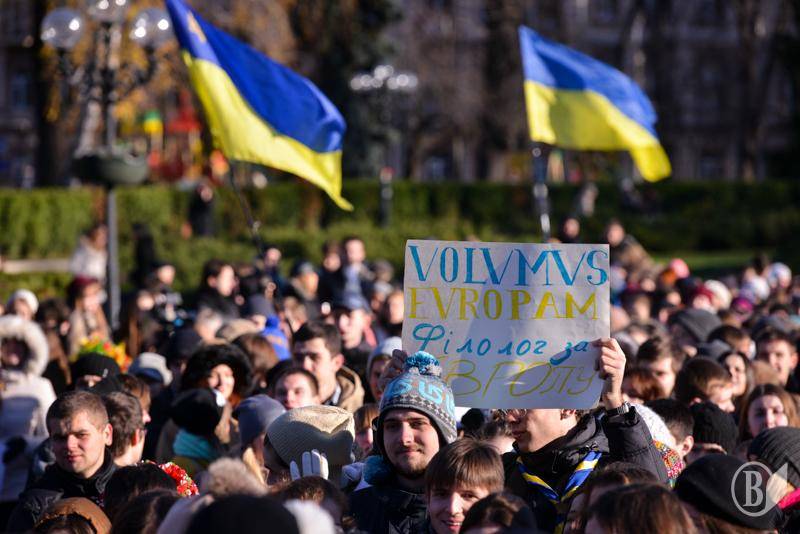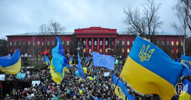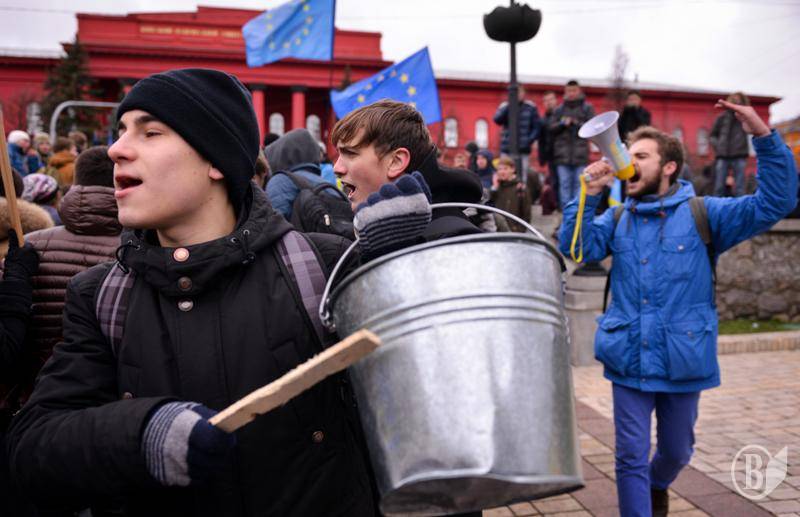 Озброївшись барабанами, національною та євросимволікою, з-під стін свого університету вийшли студенти Києво-Могилянської академії. Велика колона пройшла центральними вулицями міста до університету імені Тараса Шевченка, де організатори звернулись до студентів інших вишів з проханням вийти на підтримку євроінтеграції.