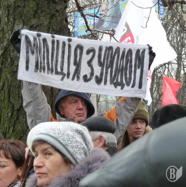 Первых людей в форме участники поступи увидели лишь около памятника Ленину на Бесарабке. Усиленная охрана напоминала стратегически важный объект.