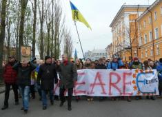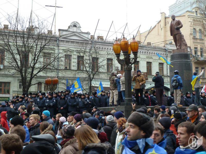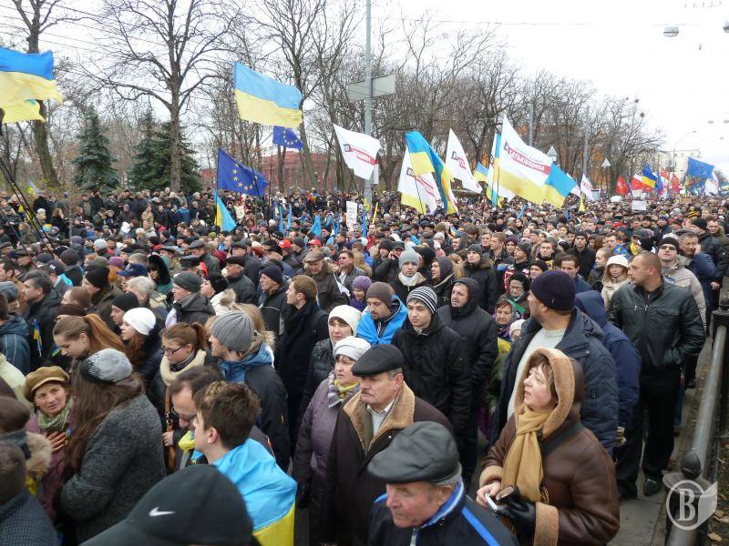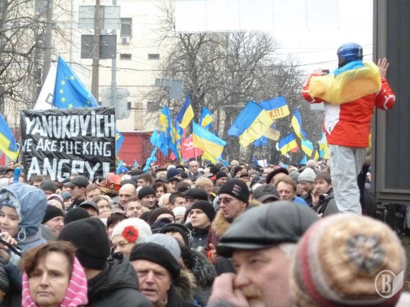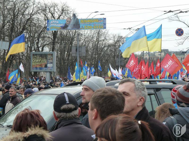 Территория около красного корпуса университета была заполнена людьми до краев, колоннам из столичного проспекта Шевченко и улицы Владимирской не было видно конца. Всюду царила эйфория возвышенного духа и единения.