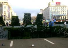 Участники Народного вече, которые собирались в воскресенье утром около памятника Шевченко, прошли центром столицы к Площади Независимости. Возглавляют колонну лидеры оппозиции Арсений Яценюк, Виталий Кличко, Олег Тягнибок. Люди рынулись убирать металлические ограждения, которые установили на Площади после кровавого разгона митинга. Милиция разбегается в разные стороны. Полусмонтированную елку, устанровка которой вроде бы стала поводом к ночному побоищу на площади, люди не трогают, но установили на ней флаги Украины и Евросоюза, а к елке возложили жалобные венки.