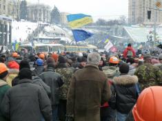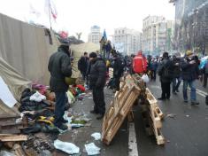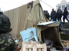 На Евромайдане также работает наш специальный корреспондент Олег Головатенко. Он предоставляет свой фоторепортаж, а также дежурит в пресс-центре Майдана.