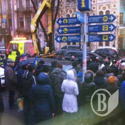 Автівка, яку оточили міліціянти, зараз перебуває на вулиці Володимирській біля станція метра «Золоті Ворота». На місце прибуло декілька слідчо-оперативних груп, які опечатують машину та звинувачують власницю авта у скоєнні наїзду на даішника.