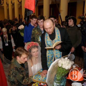 Перша революційна пара обвінчалась 5 лютого в приміщенні Київради, яке перебуває в розпорядженні активісти Майдану.