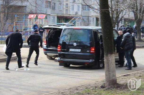 "Машина рвонула так швидко, що з незакритого багажнику вилетіли пляшечки з водою. Фото не дуже якісні, але передають динаміку того, що відбувалося", - пояснив Демченко.