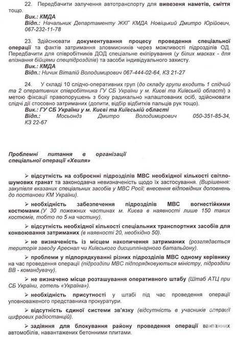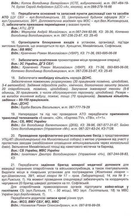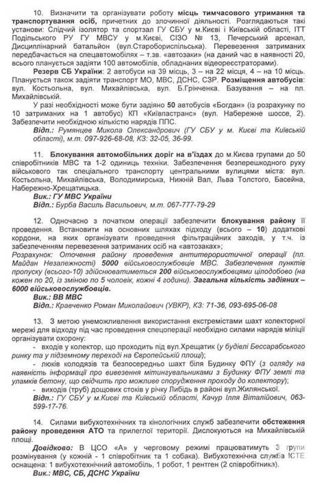 Крім того, він надав прізвища та номери телефонів керівників підрозділів, що брали участь у силовому розгоні акцій протесу.