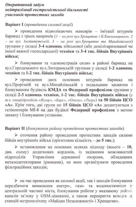 "Я вирішив оприлюднити частину планів "Хвиля" та "Бумеранг" — документи, які доводять, що снайперами на вул.Інститутській були бійці підрозділу спеціальних операцій внутрішніх військ, яким керує полковник С.Асавалюк, та бійці підрозділу внутрішніх військ "Омега"", - повідомив Москаль.
