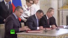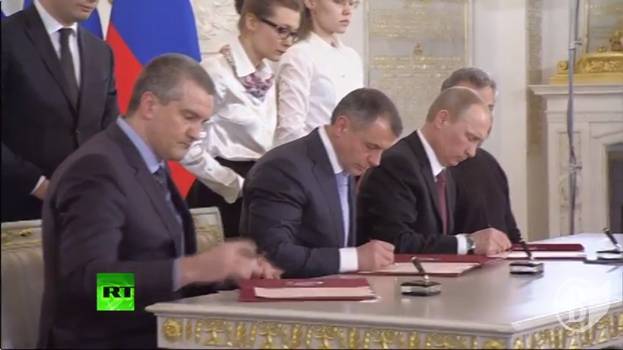 Постфактупостактум: РФ підписала документи з Сергієм Аксьоновим та Володимиром Константиновим про приєднання "незалежного" Криму до Російської Федерації.
