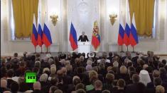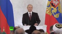 Словесні тортури президент РФ Володимир Путін почав із повідомлення про життєво важливе історичне рішення – тримати інтригу не в його стилі.