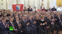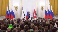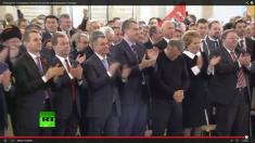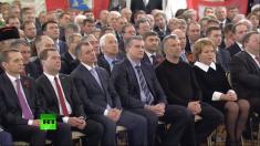 Кульмінація проповіді великого Імператора – це порівняння прагнень жителів Абхазії та Косово - чому їм можна існувати незалежно, а Криму заборонено? До речі, Росія поважає вибір обох республік ( ви що – не знали?).