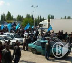 Колона з тисячі автомобілів з кримськотатарськими прапорами висунулася до блок-посту в Армянськ, щоб зустріти лідера кримськотатарського народу, народного депутата України Мустафи Джемілєва, який повертається на автомобілі з Києва до Криму.