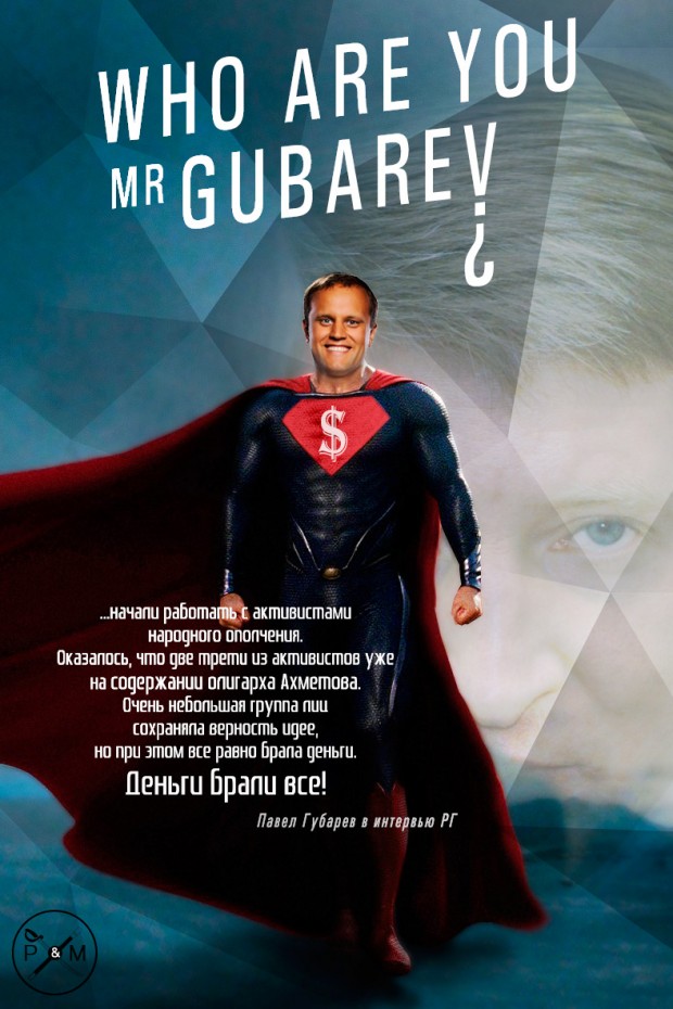 Но Губарева выторговал из тюрьмы не Ахметов, а Пономарев, обменяв его на трех СБУшников. И Губарев со всей революционной прямотой прилюдно слил Ахметова и опубликовал всё, что мог: «Оказалось, что две трети из активистов уже на содержании олигарха Ахметова. Очень небольшая группа лиц сохраняла верность идее, но при этом все равно брала деньги. Деньги брали все».