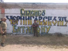 До речі, жителі райцентру у знак вдячності нашим хлопцям вивісили кілька біл-бордів з надписами на кшталт «Дякуємо батальйону «Чернігів».