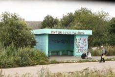 Вот такая любовь к теме, посвященной пока что руководителю соседнего государства. Раньше украинцы были менее политически сознательны и писали в разных местах, как и россияне, слово из трех букв. Теперь же -- целые поэтические строки.