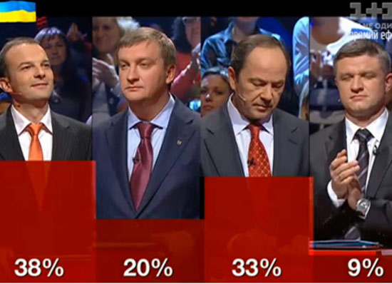 Щирість Єгора Соболєва та досвід Сергія Тігіпка сподобалися аудиторії: за результатами глядацького голосування Соболєв отримав 38% підтримки, Тігіпко - 33%. За Павла Петренка проголосували 20% глядачів, а Дмитро Шимків набрав лише 9%.