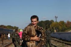 Это тот момент, когда объятия самые искренние, а поцелуи - самые пылкие. Они ждали долгих 4 месяца и когда наконец прибыли домой, сознались: не ожидали такого теплого приема и едва сдерживали слезы.