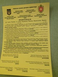 Отож, п’ять представників різних конфесій та двоє представників Рівненської обласної державної адміністрації таки підписали історичний документ. Бо вперше за історію незалежної України представники різних релігійних конфесій на регіональному рівні офіційно погодилися створити робочу групу, яка намагатиметься напрацювати механізм об’єднання конфесій.