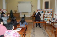 Работники библиотеки искренне поблагодарили сотрудников Службы безопасности за этот интеллектуальный подарок и выразили убеждение, что эти книги пригодятся не только научным работникам, преподавателям, учителям, студентам, но и будут интересными для школьников старших классов.