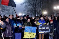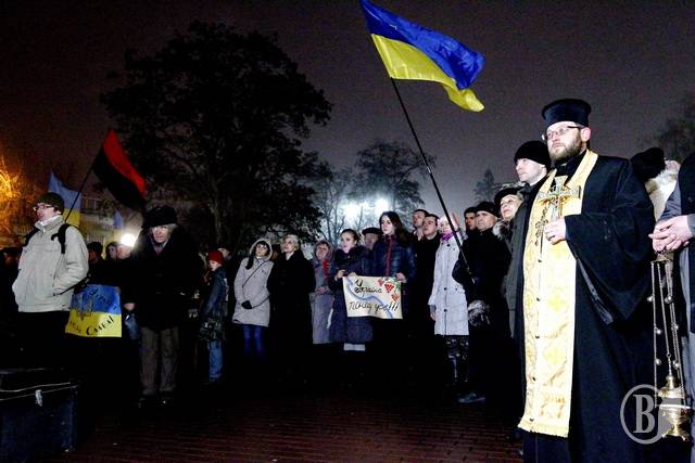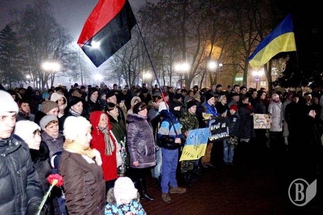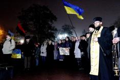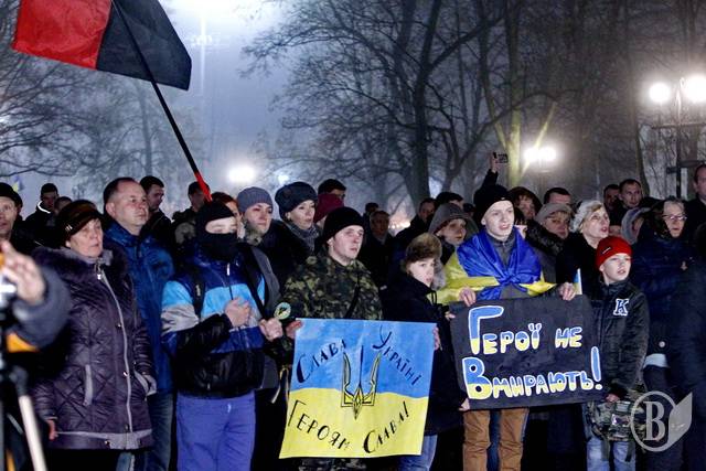 Із лампадками та свічками, квітами, національними прапорами та плакатами із надписом «Герої не вмирають» прийшли сьогодні чернігівці до скверу імені Попудренка.