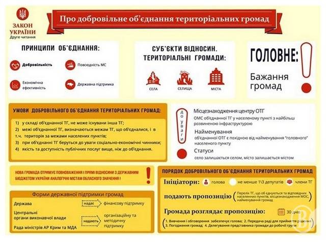 Окрім цього, держава ще стимулюватиме громади, які вирішили добровільно об’єднатися, додатково виділятиме кошти та сприятиме залученню міжнародних фінансів для проектів із реконструкції закладів бюджетної сфери.