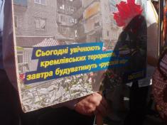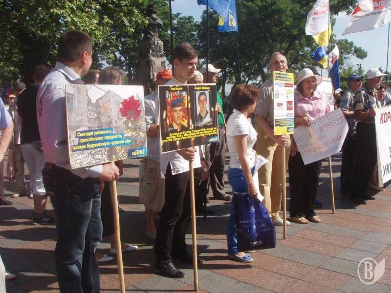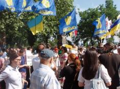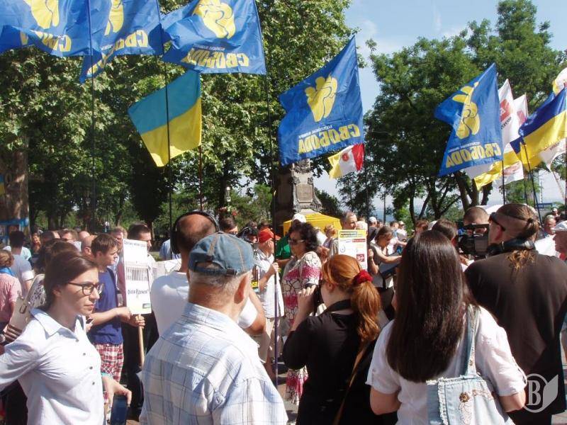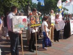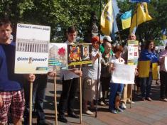 Обласна організація ВО «Свобода» пікетувала ХХХ сесію міської ради проти винесеного на порядок денний питання "про увічнення кремлівських терористів та провокаторів, які згоріли в Будинку профспілок 2 травня 2014 року".