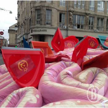 В центре Львова представители львовской городской ячейки политической партии «ДемАльянс» провели акцию под названием «Выбей совок из мозга».