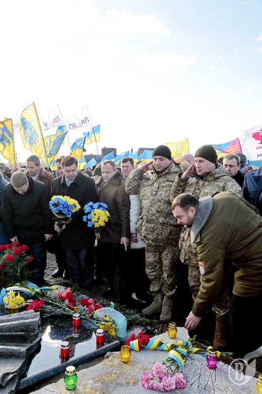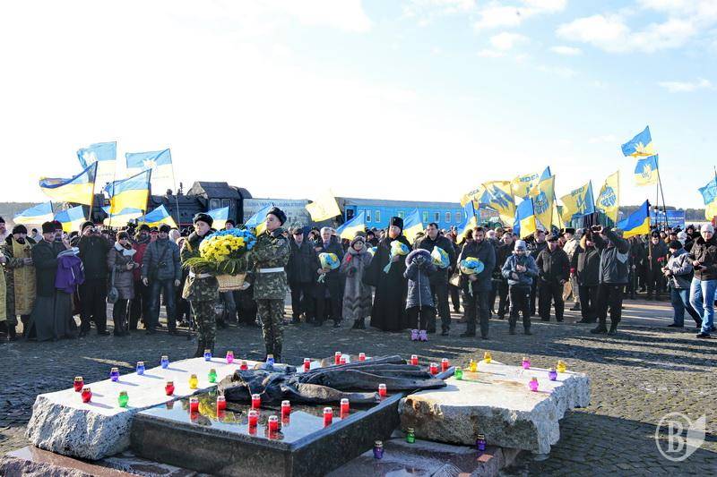 К величайшему сожалению, трагические страницы истории повторяются. И сегодня, как и почти сто лет тому назад, тысячи новых героев жертвуют собой ради Украины. Поэтому лейтмотивом нынешних мероприятий по отмечанию подвига Героев Крут стало также чествование памяти бойцов АТО, которые погибли в борьбе за независимость, суверенитет и территориальную целостность Украины. Именно в этот день год назад началось наступление врага на дебальцевском направлении.