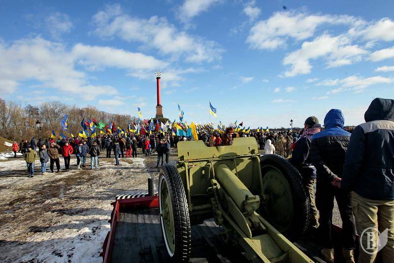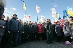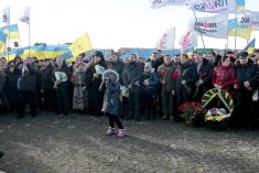 Участники митинга отметили память погибших Героев минутой молчания. Было озвучено обращение Президента Украины к Украинскому народу в связи с Днем памяти Героев Крут.