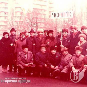 Областная элита: делегация Черниговского Руха на Всеукраинской акции «Цепь единения». 21 января 1990 года.