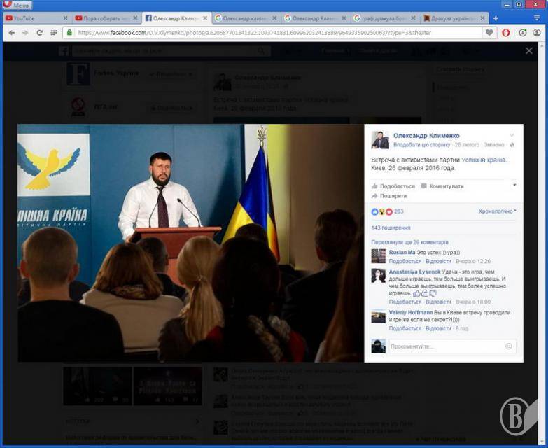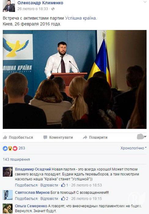 Якщо ж серйозно, то зрозуміло, що дехто зляпав примітивний фотомонтаж, де Клименко виступає з трибуни перед якоюсь аудиторією. Можливо, монтаж виконаний саме для того, щоб зробити оте повідомлення в соцмережі.