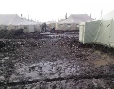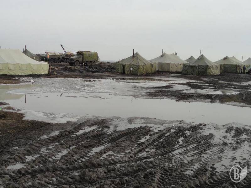 Нині на полігоні постійно знаходиться 6-7 тисяч військових – приблизно дві бригади. Однак умови їх розміщення залишають бажати сильно кращого – намети розташовані на відносно невеликому майданчику, фактично в болоті.